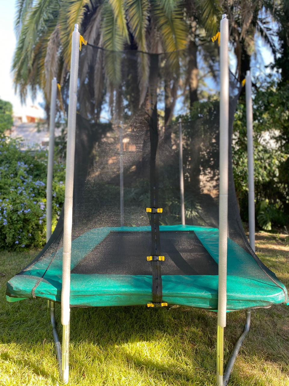 La tela de salto es de Phermatron (americana), ideal para la intemperie, ya que permite el flujo de agua en caso de que llueva… No te dejes engañar, es la tela ORIGINAL de cama elástica.
